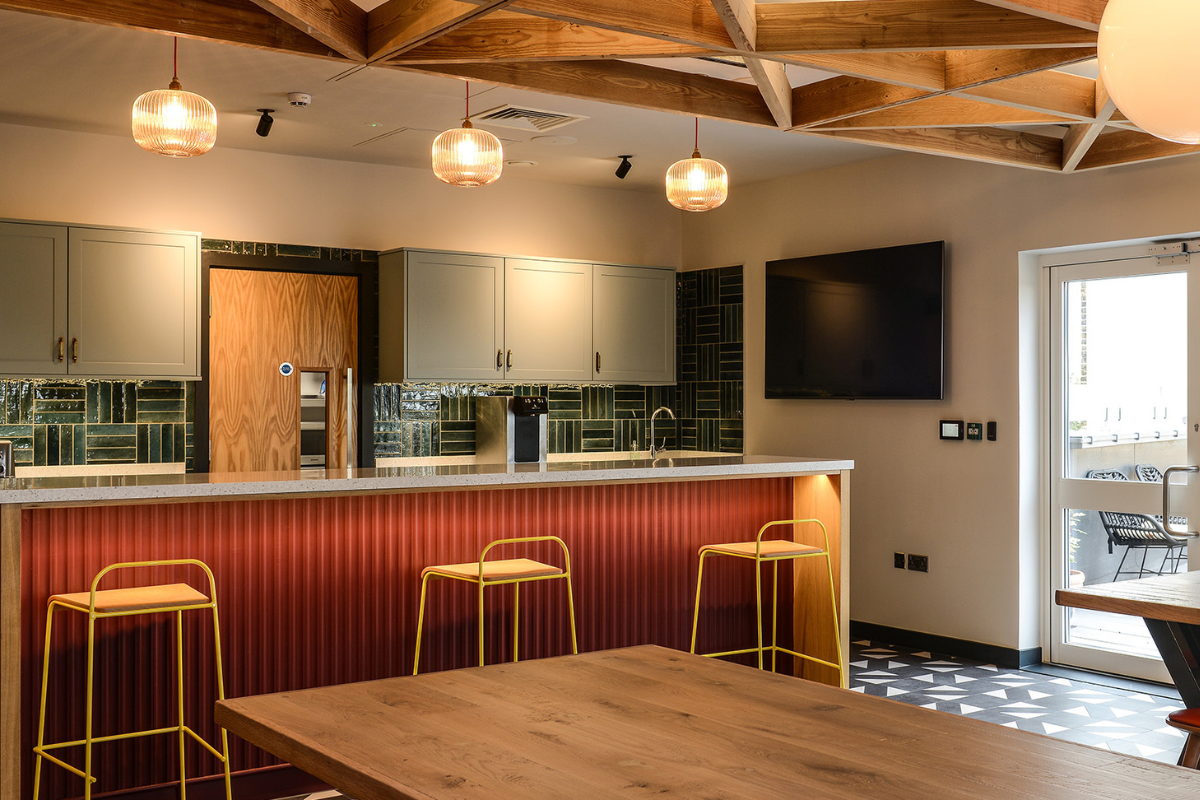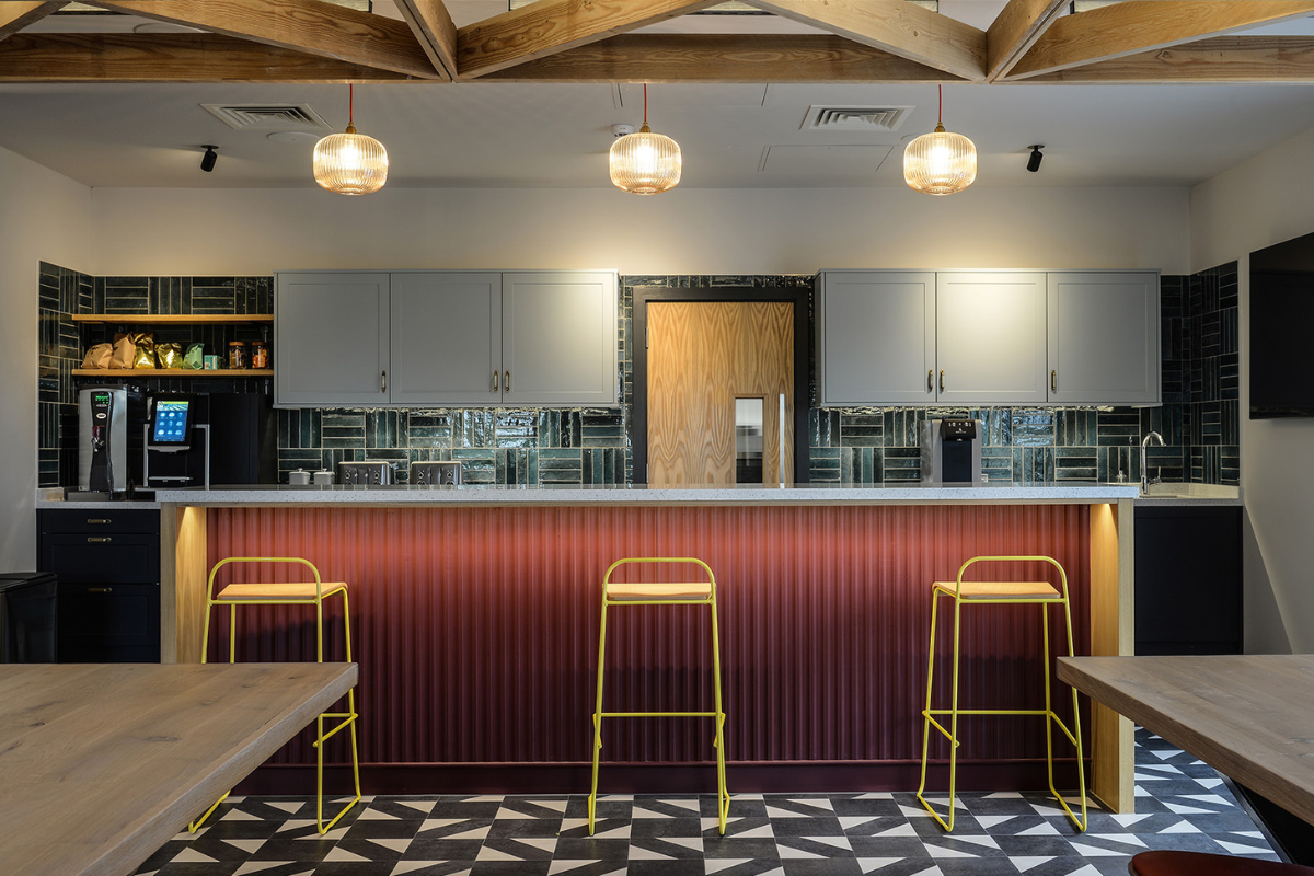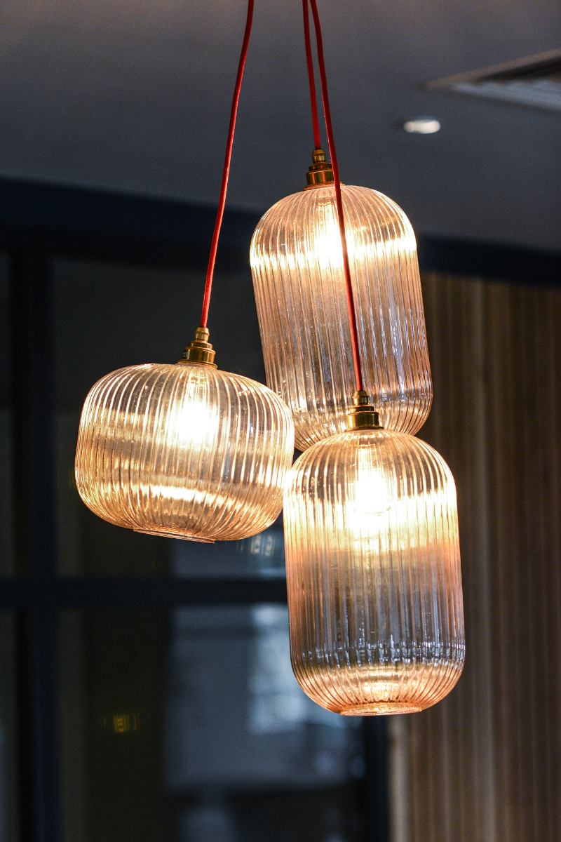 Fullers Smith & Turners head office in London by Simple Simon Designs. This was an exciting project to be a part of where we designed a custom Lulu double arm wall light and multiple reeded pendants. The space is not only functional but also fun and creative through carefully considered design elements.